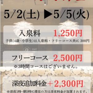 ※入浴のみの場合はタオルの貸し出しがございませんので、タオルをご持参ください。