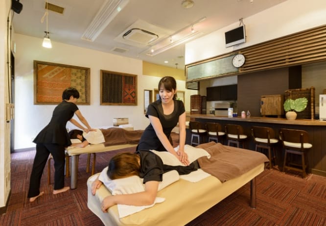 マッサージ系は、一階で垢すりとリンパマッサージが両方とも入浴施設と直結で使えますし、2階でオイルマッサージや普通のマッサージも可能です。