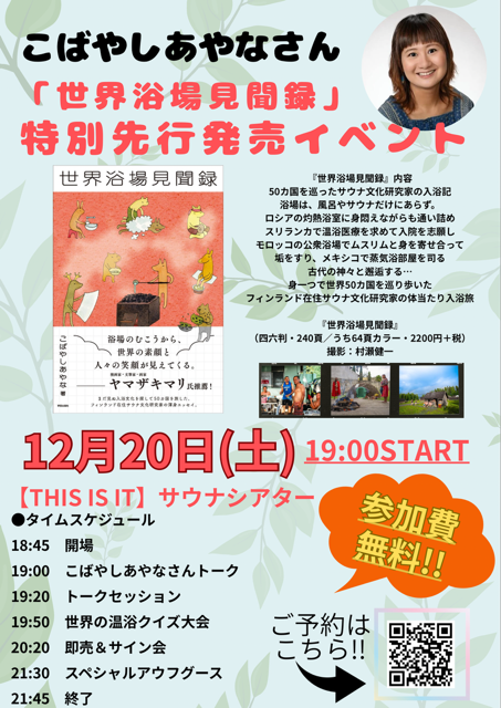 2025年12月22日発売「世界浴場見聞録」のリリースを記念しまして、著者こばやしあやなさんをお招きしまして特別先行発売イベントを開催!!