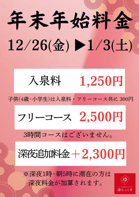 湯らっくすは年末年始も休まず営業いたします。